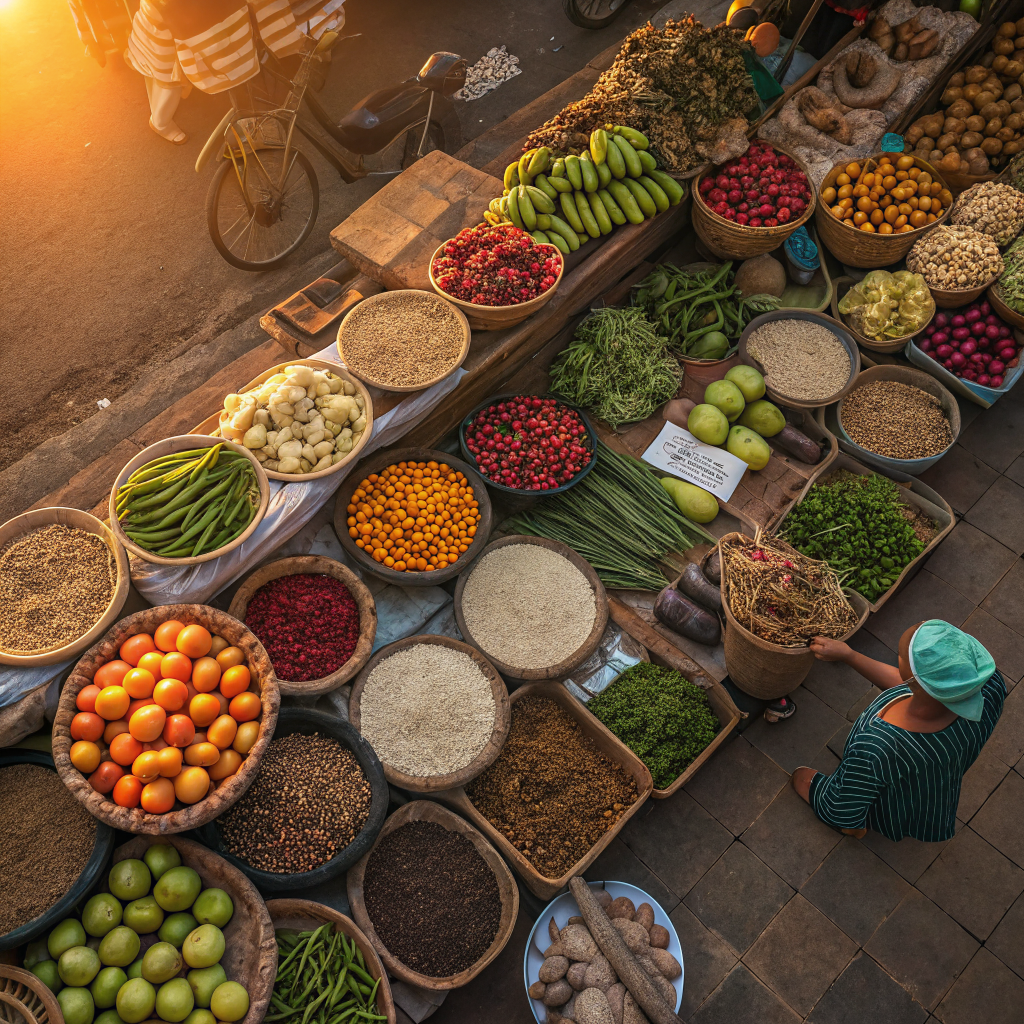 फल, सब्जी, और अनाज सहित कई प्रकार के उत्पाद उपलब्ध हैं।